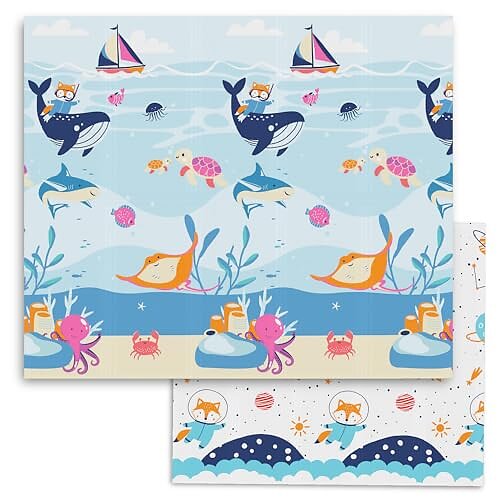MIKMEL Lekmatta för barn, XXL golvmatta i hopfällbart skum, vändbar baby park wake-matta, vattentät krypande barnmatta.