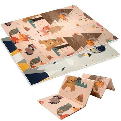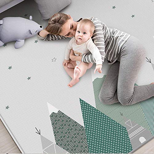 HUMBI Lekmatta baby, krypmatta, XPE-skum, dubbelsidig, flatbar, vattentät, extra storlek, matta babymatta, halkfri, 180 x 200 cm, by och skog