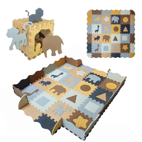 Relaxdays Lekmatta med safaridesign, 21 delar i alla, tillverkad av skum utan skadliga ämnen, flerfärgad
