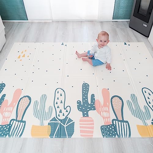 hopfällbar lekmatta för bebis, stor storlek, förtjockad skum, barnrumsmatta, mjuk matta, dubbla sidor, vattentät, bärbar, krypmatta (200 x 180 x 1 cm (79 x 71 x 0,4 tum))