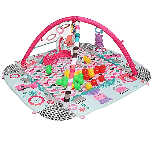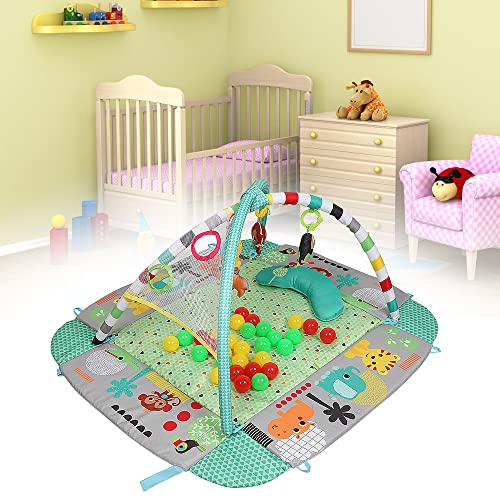 XANNI 2 i 1 baby uppvaknande matta, lekmatta för nyfödda med musik och ljus, lekbåge i skum, 30 färgglada bollar, stort gym för nyfödda