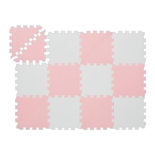 Relaxdays Pusselmatta, 12-delad lekmatta, föroreningsfri, EVA-skum, barnrum, 114 x 86 cm, rosa/vit, 114 x 86 cm