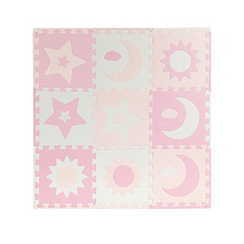 Momi AKCE00030 pussel NEBE av EVA-skum, 9 delar 30 x 30 x 1 cm med kantdelar, perfekt som en krypmatta (90 x 90 x 1 cm), lekmatta, leksaksförvaring, rosa, 90 x 90 cm
