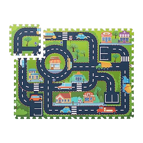 Relaxdays Pusselmatta gata, 12-delad lekmatta, föroreningsfri, EVA-skum, barnrum, 114 x 86 cm, färgglad, grön, grå, röd