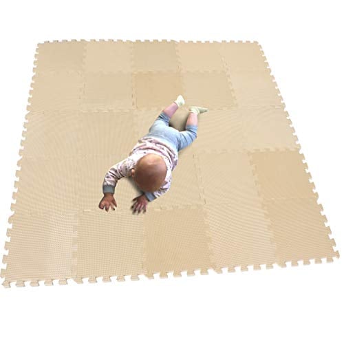 MQIAOHAM pusselmatta för barn, lekmatta, rutor, skum, lekmatta, plattor, babymattor för barn, mjuka lekmattor, flicka, lekmatta, sammankopplade skumgolvmattor för baby, beige CDW110G301025