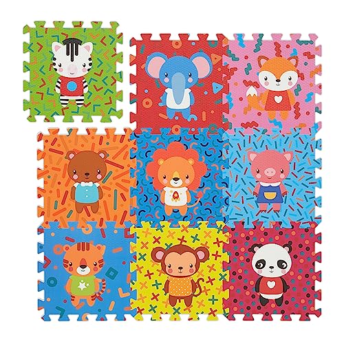 Relaxdays Pusselmatta djur, 9-delad lekmatta, föroreningsfri, EVA-skum, barnrum, 86 x 86 cm, färgglad