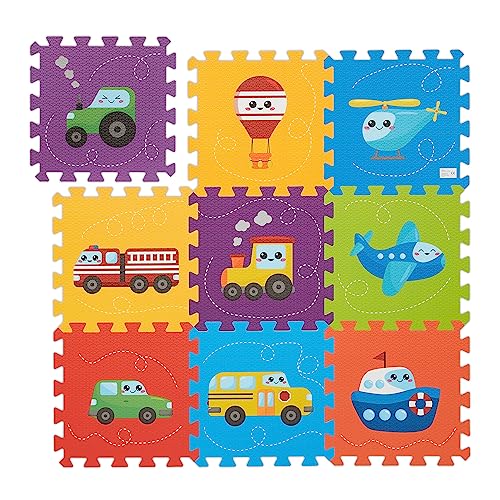 Relaxdays Pusselmatta fordon, 9 delar. Lekmatta, föroreningsfri, tvättbar, skum, krypmatta för bebisar, färgglad