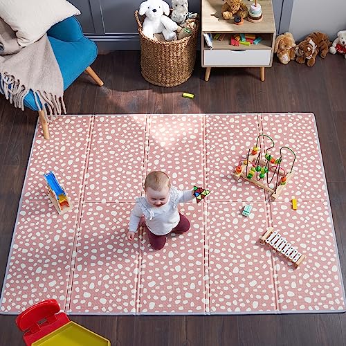 Bubba Bear Vikbar lekmatta i skum för spädbarn och barn, stor vadderad matta för krypning och lek, lätt att rengöra (200 x 150 cm, rosa)