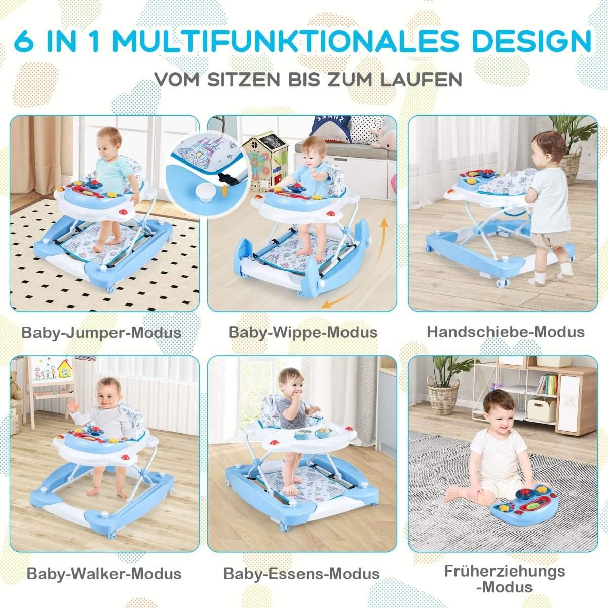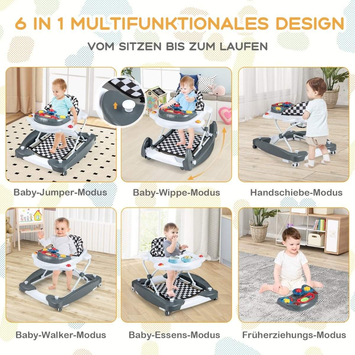 6-i-1 gåstol med avtagbar lekplatta och justerbar höjd