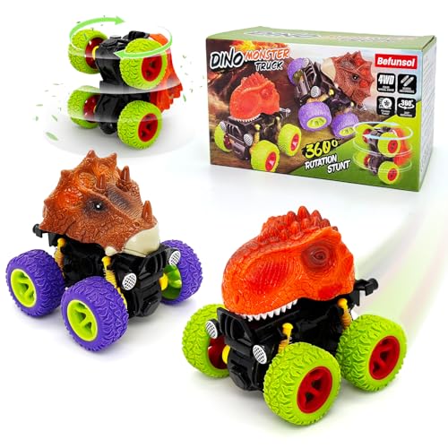 Bil leksaker barn 2 år pojke, 2-pack dinosaurie leksak bil Barn 2 3 4 år pojke present, Friktion Tröghet dinosaurier monster truck bilar leksaker för barn 3-5 år pojkar