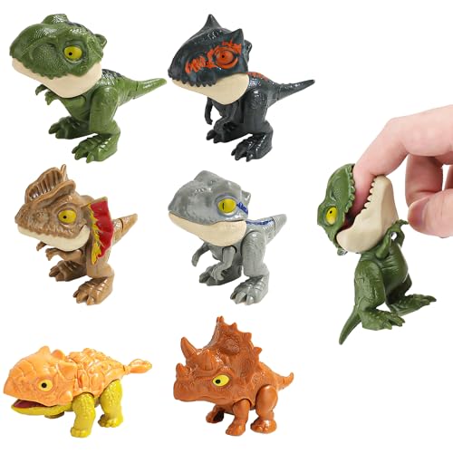 TYFYH Dinosaurie-leksak, set med 6 stycken dino-bit-fingrar, dinosauriefigur, små dinosauriefigurer, dinosaurieleksak, från 2 år, barnkalas leksak, lämplig för barn