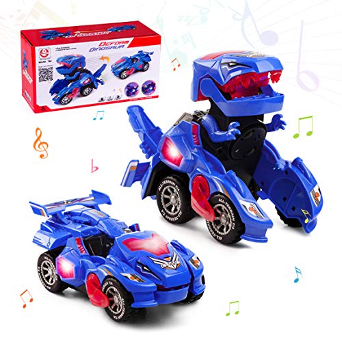 Highttoy Barn leksak 3 4 5 6 år, automatisk omvandlingsbar dinosauriebil med blinkande lampor och musik elektrisk transformator dinosaurie leksak barn 3-6 år gammal pojke flicka gåva