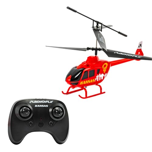 ODS RADIOFLY Kansas Radiostyrd Helikopter leksak för barn, 4 funktioner, LED-ljus och USB-laddning, längd 21 cm +8 år, röd och orange, 40316