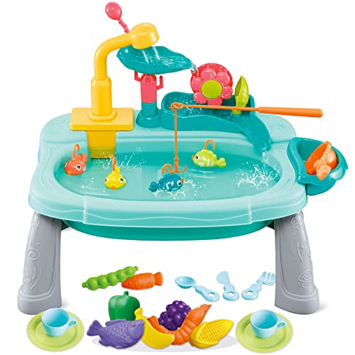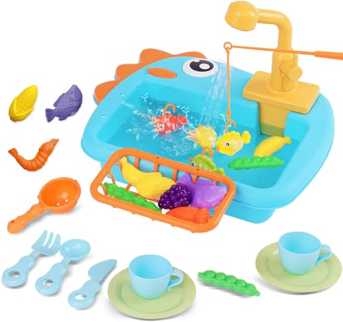 Handfat för barn med vatten Montessori Bärbar Arbetande Spel Vridbar Kran Med Aktuellt Vatten Fiske Kök Leksak Utomhus Diskmaskin Söt Sink Leksak Mini Handfat Verktyg