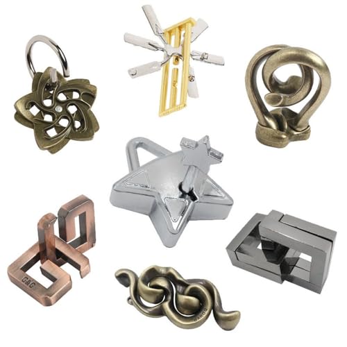 OBEST 7 stycken pusselspel metall pusselset, IQ-test logikspel tankespel, metall upplåsning leksak magisk 3D-lås, hög svårighet vuxna och barn utmaning leksak