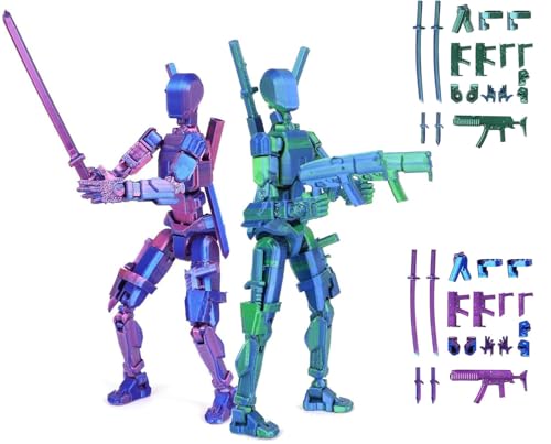 2 stycken T13-actionfigurset (färdig montering), 3D-tryckta multileder, titan, 13 actionfigurer, Lucky, 13 robotar, actionfigur, dummy, skrivbordsdekorationer för spelliebspelare, leksak, blå