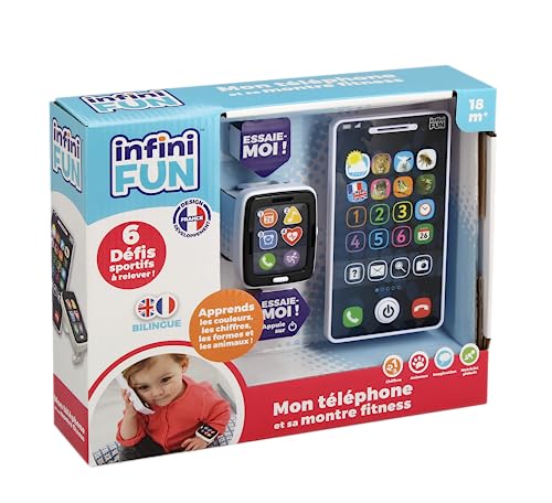Infini Fun - Min telefon och hans fitnessklocka - Den första imitation franska/engelska tvåspråkiga telefonklockan för småbarn - imitation leksak med flera lärande från 18 månader