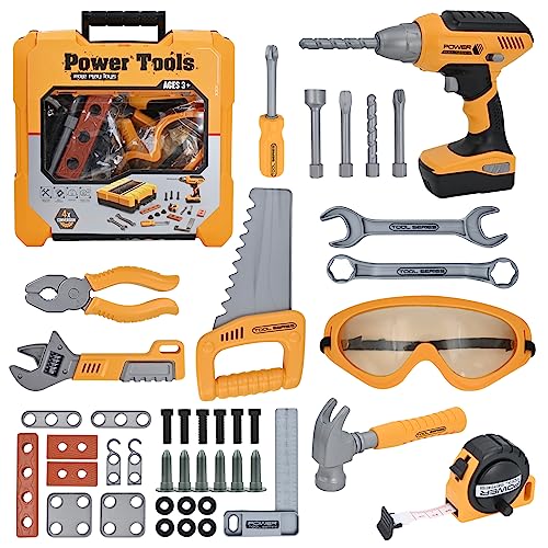 Hyrenee Arbetsverktyg leksak barn byggstenar verktygslåda 37 stycken med borrmaskin, imitation pedagogiskt spel födelsedag, julklapp för barn 3–8 år