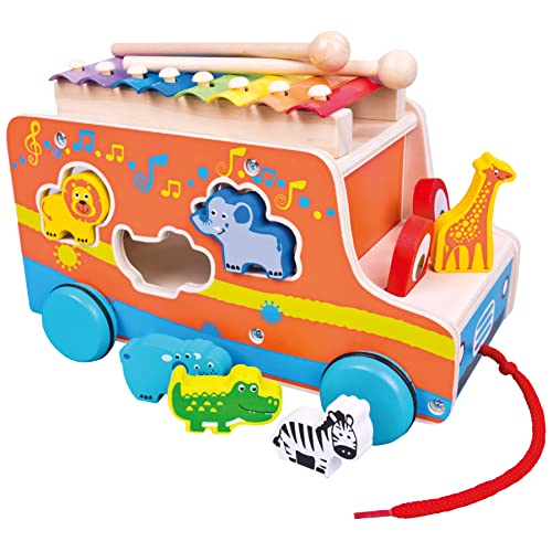 Mertens träbil med xylofon, leksaker för barn från 18 månader, barnleksaker (gethauto med sorteringsfunktion, hjälper till med de första stegen och balansövningar, inklusive djurform), flerfärgad