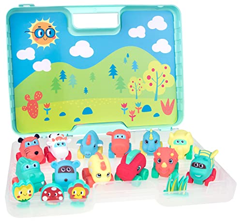 JC Toys - Mitt första djurbilslåda för att spela leksaker, innehåller 12 bilar och 4 tillbehör, perfekt för spel, främjar fantasi och kreativitet, flerfärgad, unisex, 18 månader