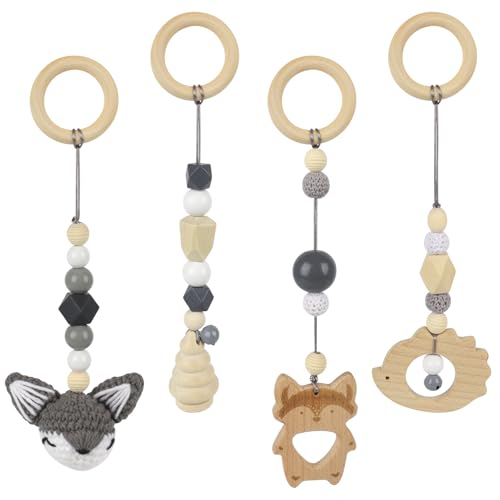 SKIKHN 4 stycken lekbågar babyleksaker från 0 månader, hängande lekbåge baby gym, trä lekbåge för spädbarn, lekbåge baby leksaker för flickor pojkar för babystol och barnvagn
