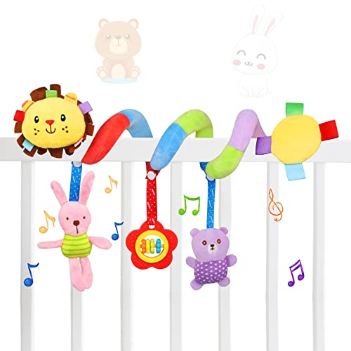 TonStyle Spiralbarnvagnsleksaker babyleksaker 0-6 månader, uppgraderad version spiral bilstol och barnvagn aktivitetsleksak för baby, mjuka plyschhängande leksaker med skallror, bästa presenten för