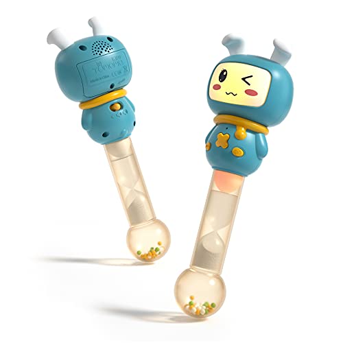 TUMAMA BARN Baby skallra, musikinstrument sensoriska ljudleksaker, lysande tandsprickningsskakare tidiga pedagogiska leksaker present till spädbarn småbarn pojke flicka 6-12 månader, kanin, blå,