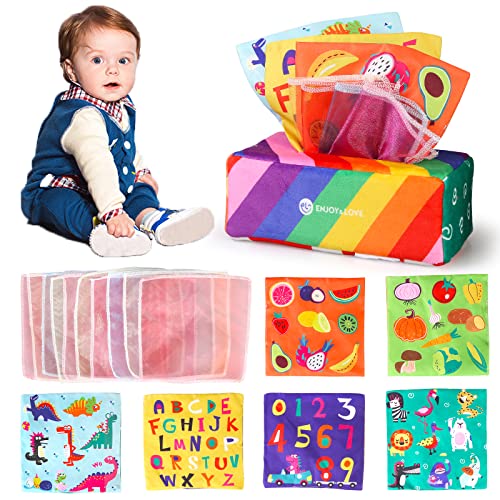 kramow Sensoriska leksaker för bebisar 6-12 månader, baby mjuka leksaker 0-6 månader, Montessori leksaker för 1 år, näsdukslåda leksak, tidig utbildning leksak gåva för nyfödda flickor pojkar