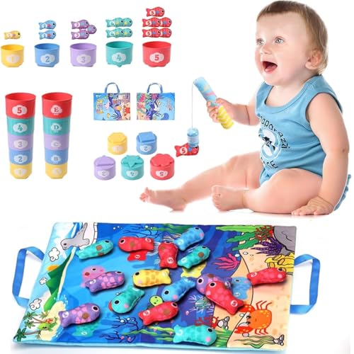 JoyJoyful Montessori barnspel 1 år, mjukt fiskespel för barn 1 år, gåvor till barn 1 år, pedagogiska spel 1 år, färgglada leksaker för barn för 6 7 8 9 10 12 månader