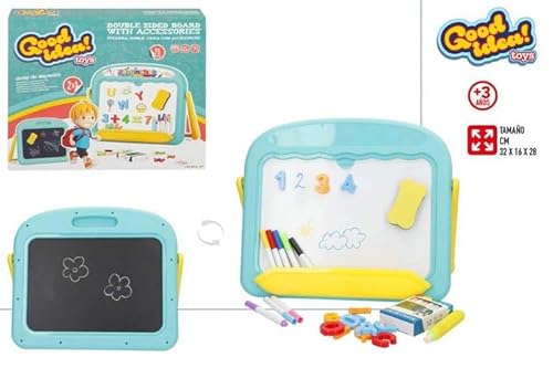 ColorBaby 47989 Good Idea 2-i-1 magnetisk tavla för barn, markörer, bokstäver och siffror, kritor, bärbar dator och suddgummi, present flicka 3 år, barntavlor, pedagogiska leksaker