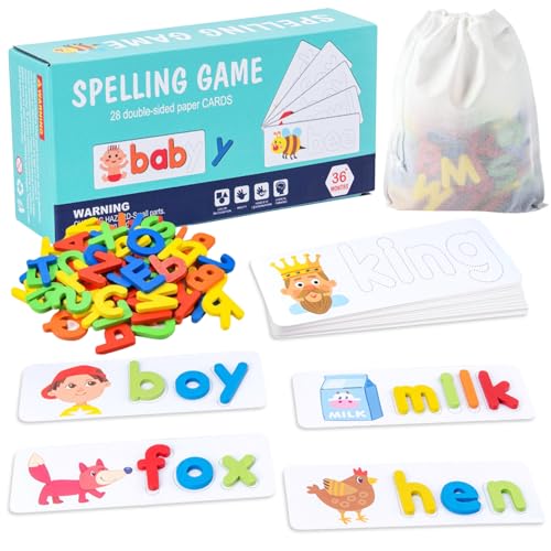 Carehabi bokstäver inlärningsleksaker, bokstäver träpusselleksaker från 3 4 5 6 7 8 år pojkar flickor, pedagogiska leksaker för igenkänningsorganisation (organisationsväska ingår)