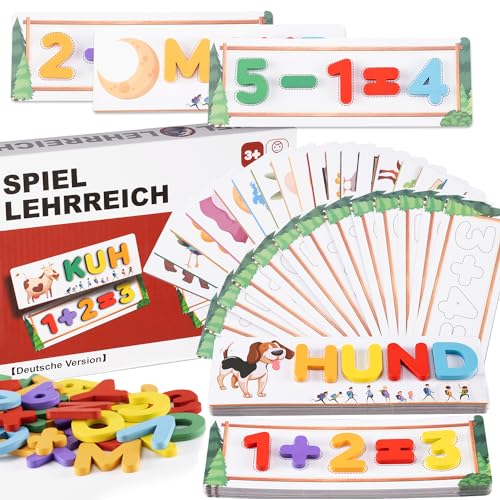 Coogam Magnetiska bokstäver och siffror i trä leksaker, kylskåpsmagneter ABC alfabetet flashkort stavningsräkning inlärning versaler liten matematik för 3 4 5 år
