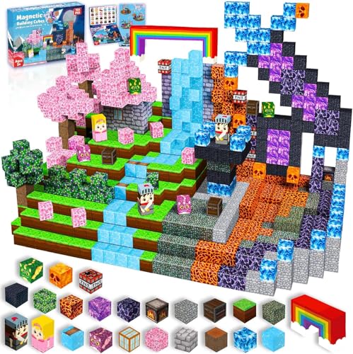 GraceDuck Magnetiska Byggklossar - 200 delar Magnetbyggklossar - Bygg Dark Forest & Pink Castle, Montessori-leksaker för barn 3–9 år - Kreativa påskpresenter till pojkar och tjejer