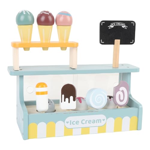 ROBUD Lekkök för barn, träleksak kök lekset med ismaskin och leksaker kökstillbehör, trä barn köksleksaker set för småbarn, present till flickor pojkar ålder 3+ (mocka)