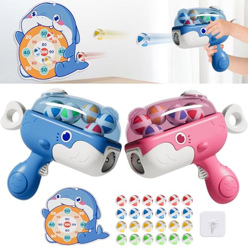 XAZASTOV Val Pistol Skytte Set med Darttavla, 2 st Pistoler och 24 självhäftande bollar, Kastspel för inomhus, inomhus, leksaker för barn, flickor 4, 5, 6, 7, 8, 9 år