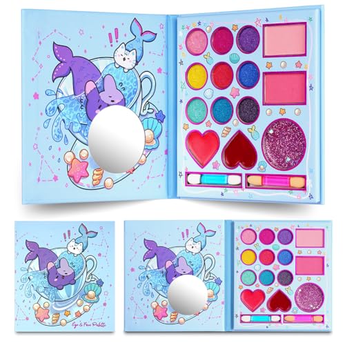 Aomig 14 färger sminkset för barn för flickor, tvättbara sminksatser för barn med spegel, giftfria kosmetiska skönhetsset Present för barn, prinsessa låtsas spela spel Leksaker Födelsedag