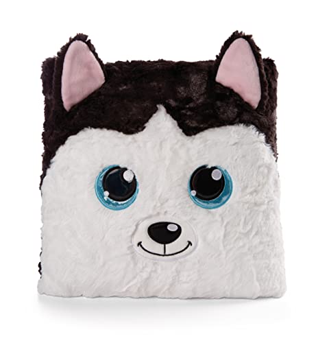 Mjuk leksakskudde GLUBSCHIS-husky Barkley 30x30cm vit-svart - Fluffig mjuk gosekudde för pojkar, flickor, spädbarn och alla som älskar gosiga leksaker – perfekt för hemmet, dagis eller på språng