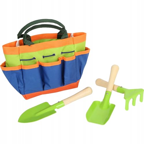 small foot Trädgårdsväska av trä och metall, med 3 trädgårdsverktyg, trädgårdsleksaker för barn från 3 år, 12015 leksaker, flerfärgad