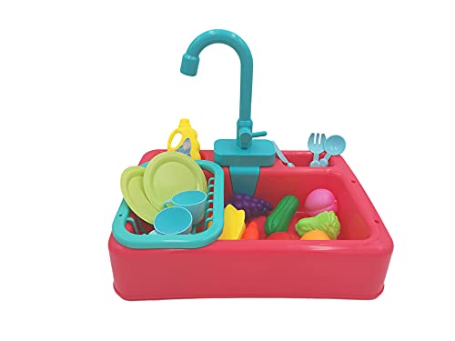 NIWWIN Barn handfat Leksaker Set med rinnande vatten Lärargåvor med rinnande vatten Låtsas kök för pojkar Flickor Simulering Diskmaskin Arbetande kran & dränering (Rosa)