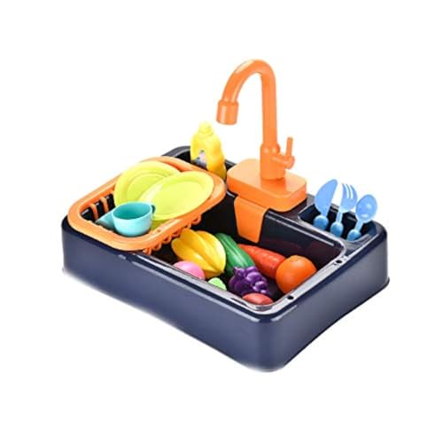 NIWWIN Barn handfat Leksaker Set med rinnande vatten Lärargåvor med rinnande vatten Låtsas kök för pojkar Flickor Simulering Diskmaskin Arbetande kran & dränering (Blå)