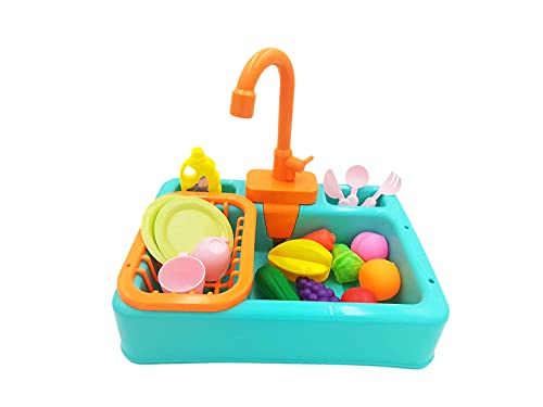 NIWWIN Barn handfat Leksaker Set med rinnande vatten Lärargåvor med rinnande vatten Låtsas kök för pojkar Flickor Simulering Diskmaskin Arbetande kran & dränering (Grön)