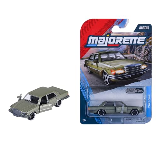 Majorette Vintage Premium – Mercedes-Benz 450 SEL (grön) – modellbil av metall med frihjul, fjädring och rörlig del – 7,5 cm samlar- och leksaksbil för barn från 3 år och vuxna