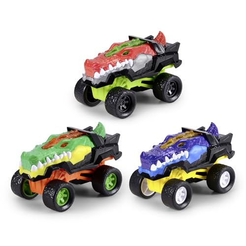 MOONTOY Dinosaurier billeksak från 1 år gamla pojkar och flickor, present till barn från 1 2 år,3 delar leksaksbil racerbil, leksaksbil för barn, press-and-go leksaksfordon för småbarn 12 18 månader