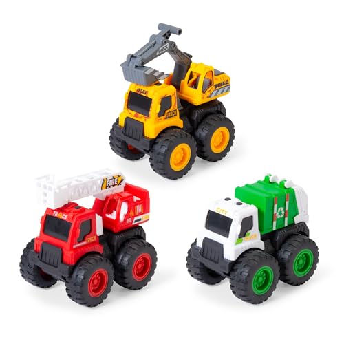 Dickie Toys - Mighty Engines Monstertruck (1 bil) - Leksaksbil för barn från 3 år med friktion och gummidäck, slumpmässigt urval av 3 modeller (grävmaskin, brand, soptransport), 8,5 cm vardera