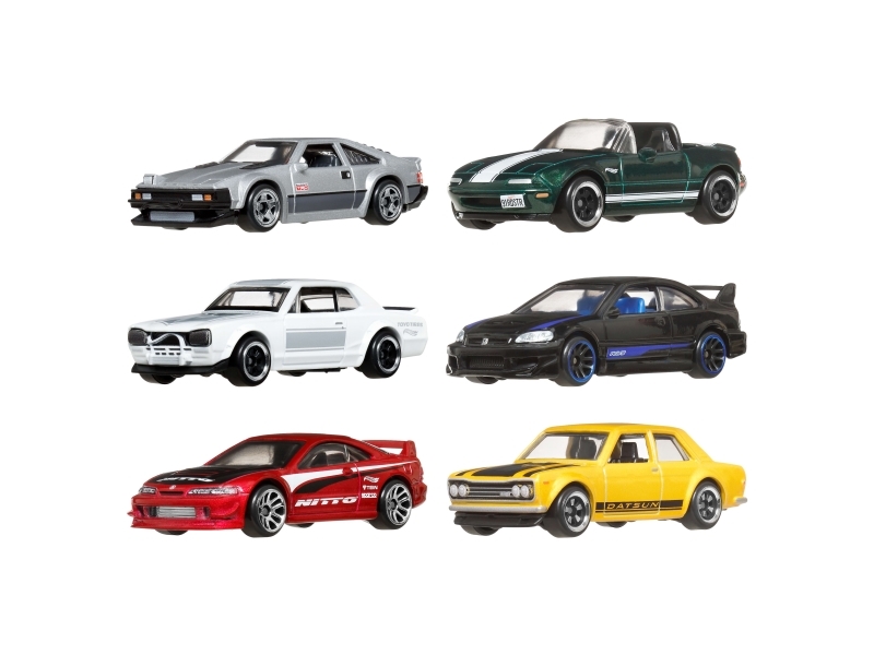 Hot Wheels Formgjutna Leksaksbilar I Skala 1:64, Set Med Sex Japanska Fordon (Stilen Kan Variera), Fordonsset, 3 År, Metall, Multifärg