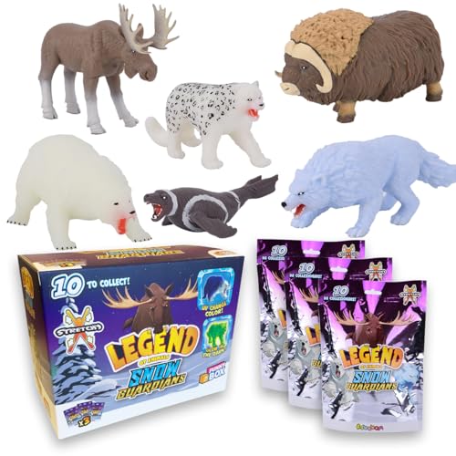 #sbabam FUNNY BOX Legend of Animals Snow Guardian, Leksaksdjur för barn, 3 st, kiosk barnlek, mjuka utdragbara figurer varg, isbjörn och andra med specialeffekter