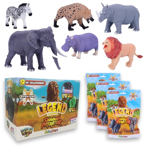 Sbabam FUNNY BOX Legend of Animals Savannah Predator, Leksaksdjur för barn, 3 stycken, kioskbarn, mjuka utdragbara dockor Du kan hitta lejon, elefant, zebra och andra