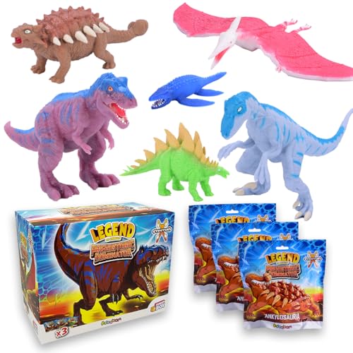 #sbabam FUNNY BOX Jurassik Monster, dinosaurier för barn med specialeffekter, 3 st, leksaker för tidningskiosk med T-Rex, Triceratops och andra - Leksaksdjur för barn +3 år