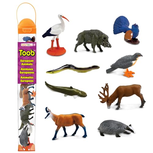Safari Ltd. Uppsättning av 9 europeiska djurleksaksfigurer | TOOB-samling | Giftfri och BPA-fri | Leksaksdjur | Lämplig för barn från 3 år och uppåt