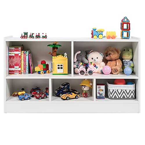 COSTWAY Barnbokhylla & leksaksförvaring, barnförvaringsskåp för leksaker, dockor och böcker, trähylla med 5 fack för lekrum, barnrum, läshörnor, skolor, klassrum, förskolor, vit